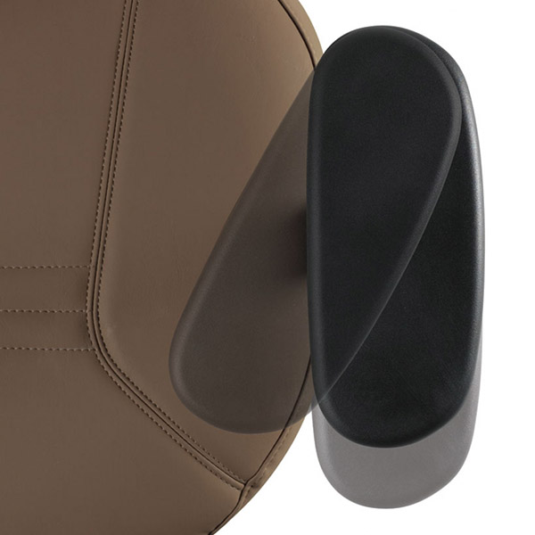 Standard with height and width adjustable arms (G3) with "sliding armcaps" that articulate inwards 30 degrees.