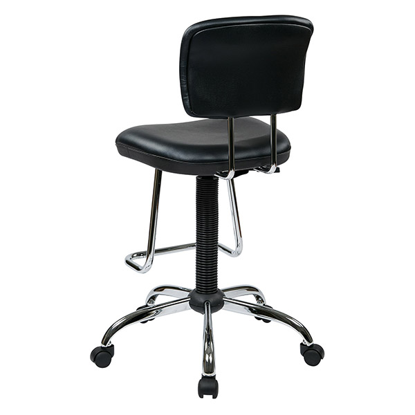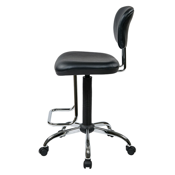 The sleek chrome design of this economical chair with teardrop footrest is sure to add elegance to any corporate or home office. The sophisticated look of black vinyl seat and back coupled with the chrome hardware add a certain visual charm. Perfect for any shape or size, this chair is height adjustable from 26"-36" with a 360-degree swivel making it truly adaptable in any setting!