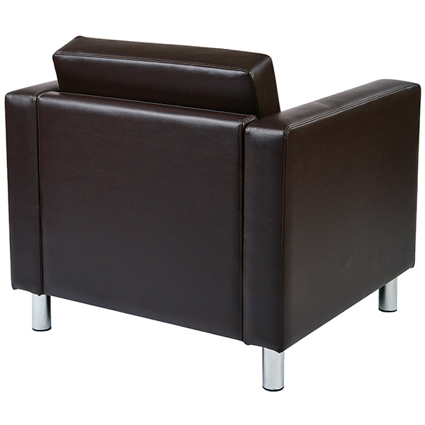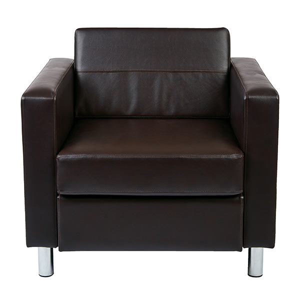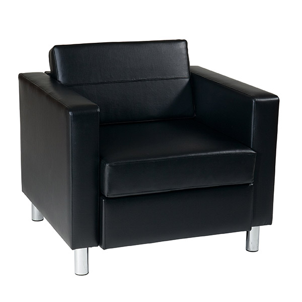 Subtle grace and affordable comforts are guaranteed with the Pacific Arm Chair from Avenue Six. This club style chair is designed with a contemporary edge in high performance, easy care vinyl. Equipped with a durable box spring seat that ensures your relaxation is well protected. All outfitted with silver leg finishes that prop this chair up and give it a chic display. The crisp, modern architecture of this club chair will certainly impress guests and decorate your home with refined taste.