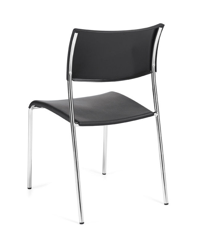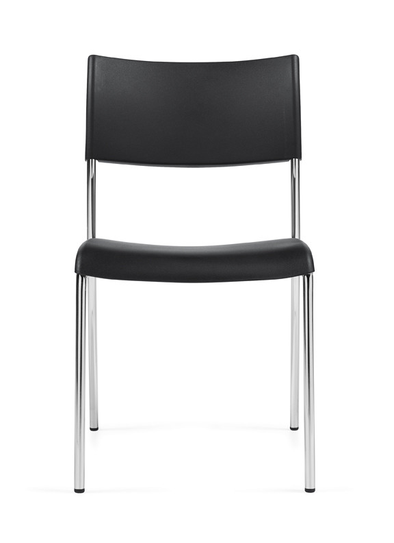 Lightweight and durable stacking chair. Durable, high impact polypropylene seat and back. Oval tube steel frame, chrome finish.