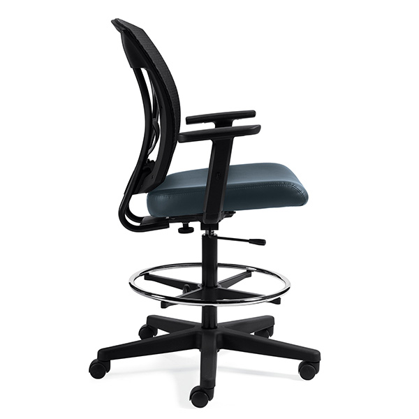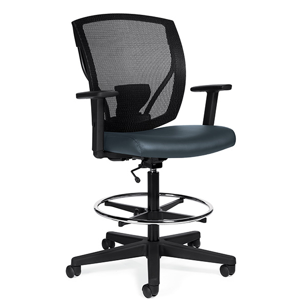 Global Ibex drafting chair comes with mesh back and foot rest ring  Breathable mesh back and comfortable padded seat. Ibex drafting Chair perfect blend of high performance and visually stunning chair design. Height adjustable T-arms.