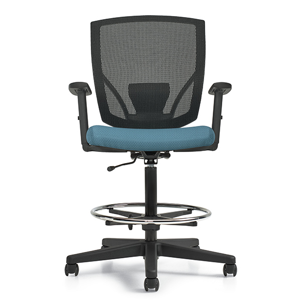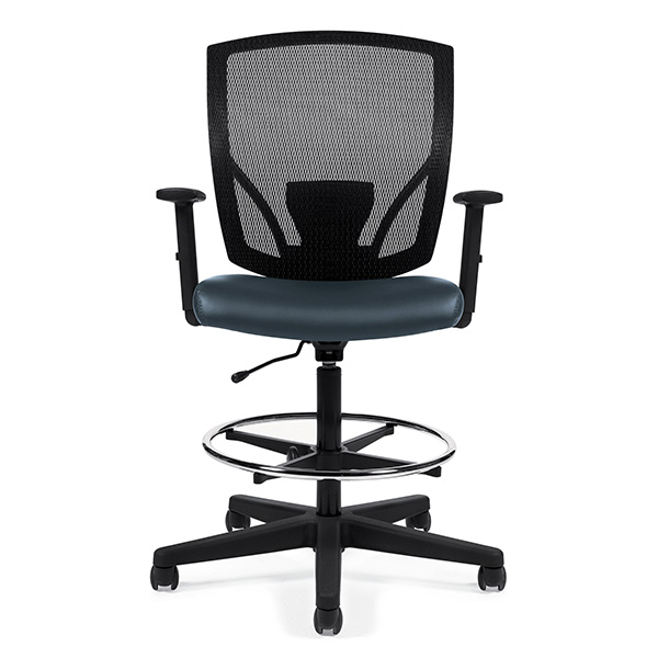 Global Ibex drafting chair comes with mesh back and foot rest ring  Breathable mesh back and comfortable padded seat. Ibex drafting Chair perfect blend of high performance and visually stunning chair design. Height adjustable T-arms.