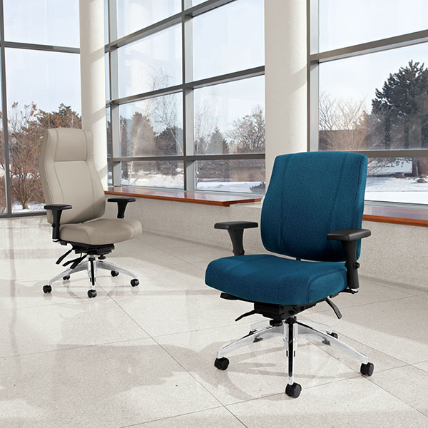 Triumph offers active ergonomics in an Executive Task Chair with lumbar support that adjusts both horizontally and vertically.