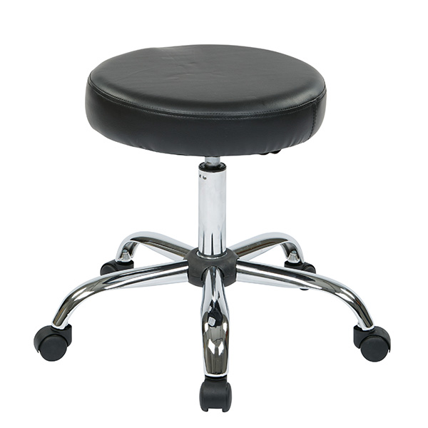 Functional design paired with a contemporary silhouette, this stool makes the perfect addition to any office or creative studio that requires durable and attractive seating that can hold up to extended use. Ideal for professionals and students alike, this chrome finished stool is both stylish and budget friendly with a compact design allowing it to fit just about anywhere without taking up too much space. Excellent for any job or task that requires seating which allows for ease of transfer from a seating position to a standing position, this tiny titan makes an excellent seating option as a medical stool for doctors, dentists, and pharmacists alike. Fully outfitted with thickly padded black vinyl upholstery, this stool can withstand the wear and tear of daily use. Equipped with a high quality pressurized seat height adjustment, the seat can elevate to the perfect height for all of your needs. Whether it is used as a counter stool for a file clerk, or a rolling stool for completing art and craft projects, this dual caster stool is sure to make your job easier. Add to cart now and start enjoying this awesome piece for years to come.