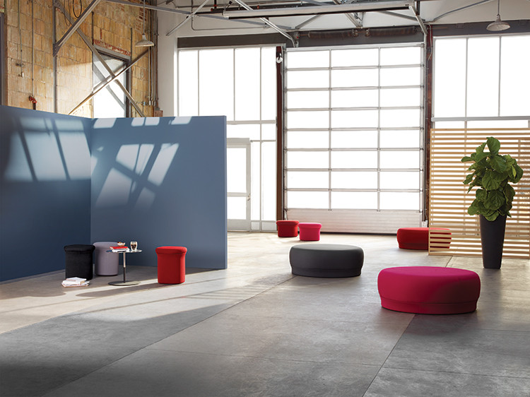 Doko Lounge pouf by Keilhauer comes in a variety of sizes and height. Pouf designed to foster easy conversations and informal meeting. Its playful form creates a pleasant mood.