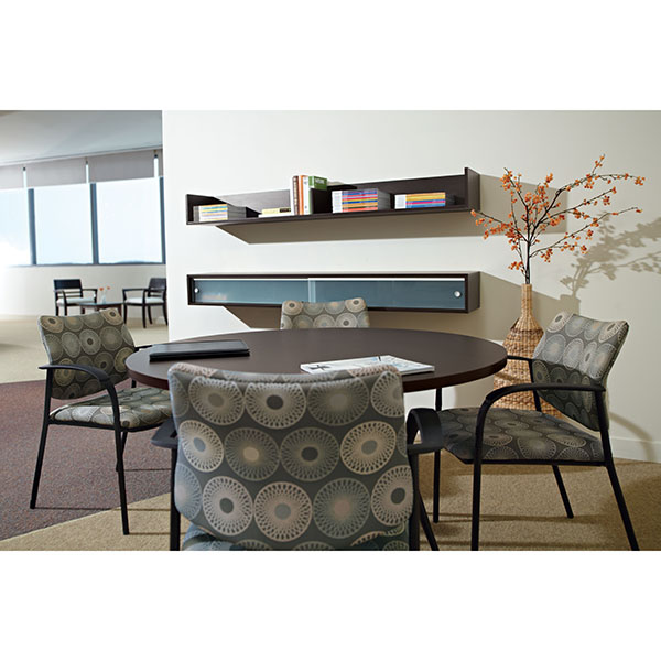 Multi-purpose seating with a sculptured look, featuring wide curved arms and a round tubular steel frame.